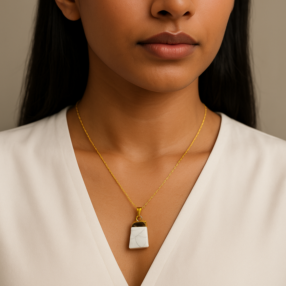 Handcrafted Natural Howlite Gemstone Pendant Necklace