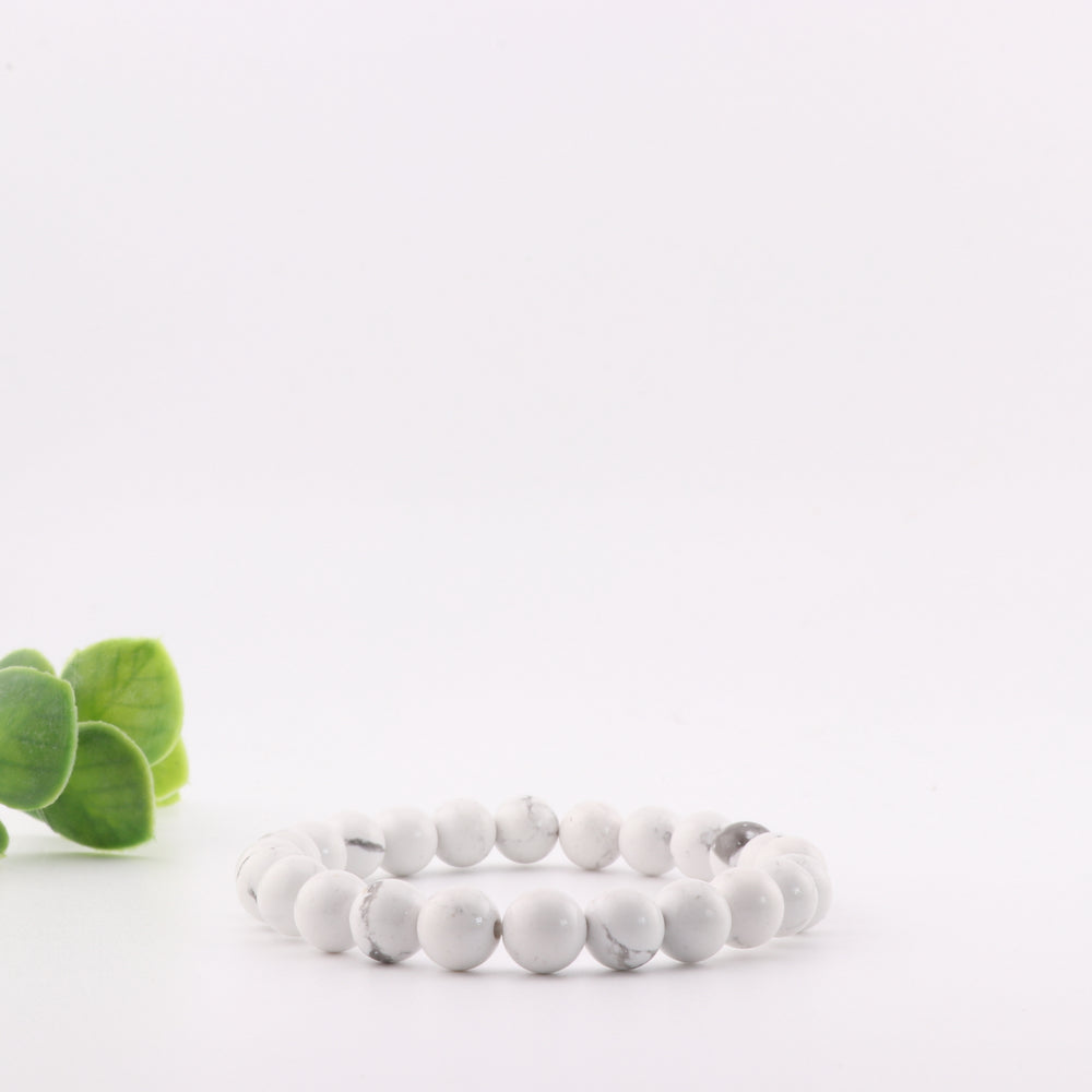 Natural White Howlite Bead Bracelet – Metal-Free 8mm Stone