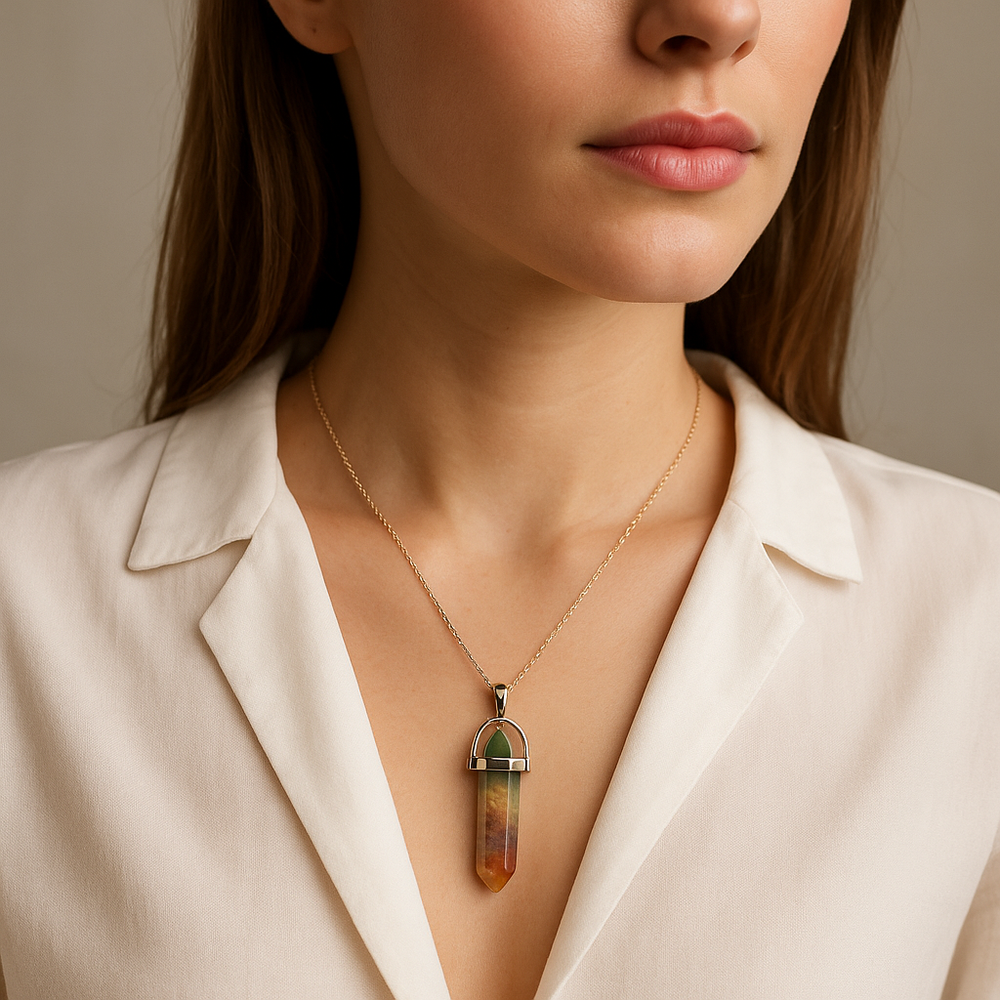 Moss Agate Point Pendant Necklace – Handcrafted Crystal Jewelry
