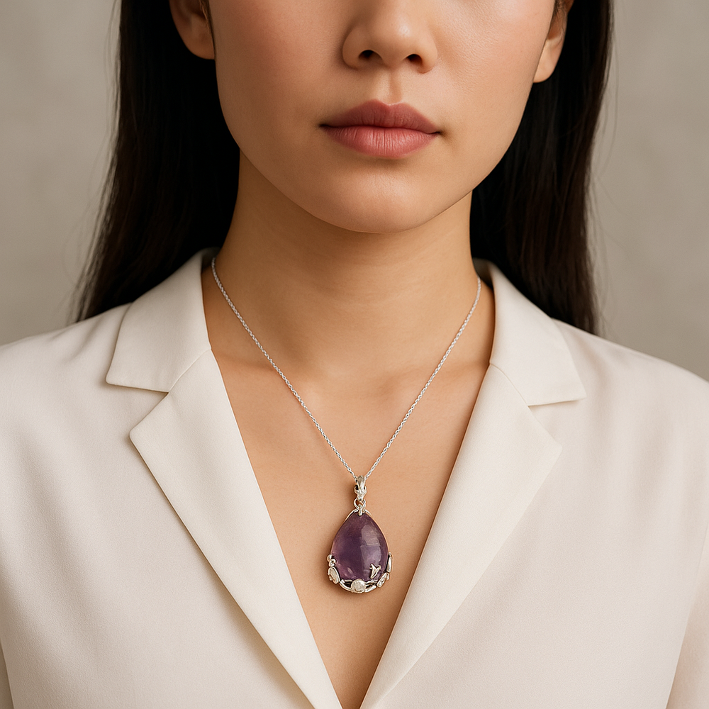 Handcrafted Teardrop Amethyst Gemstone Pendant – Serenity & Style Unearthed
