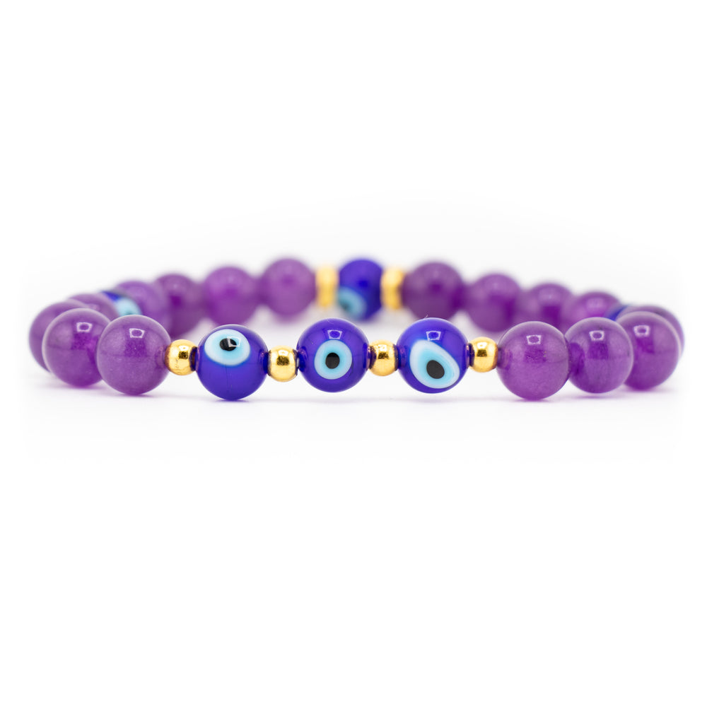 Natural Amethyst & Evil Eye Bead Bracelet - 8mm, Protection & Spiritual Harmony