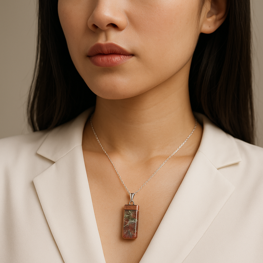 Moss Agate Slab Stick Pendant Necklace - Handcrafted Crystal Jewelry