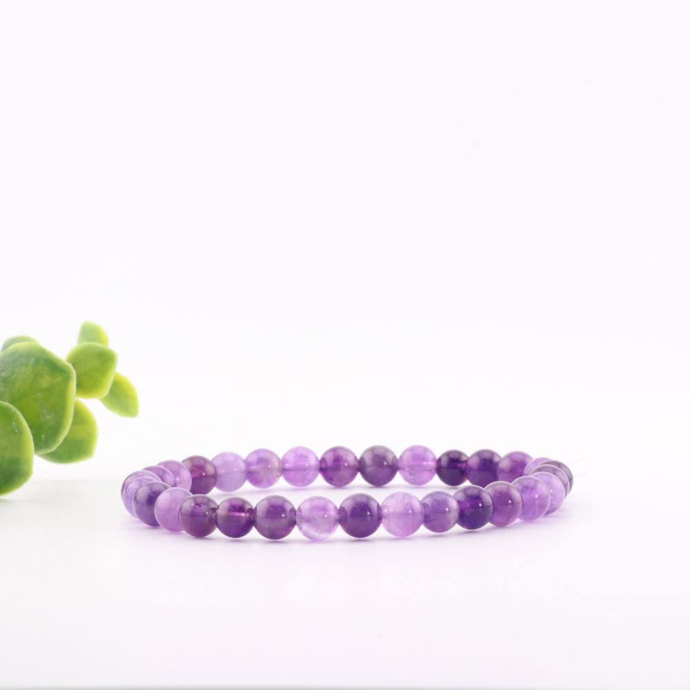 Natural Amethyst Gemstone Stretch Bracelet - Metal Free, 6mm - Purple Gemstone Accessory