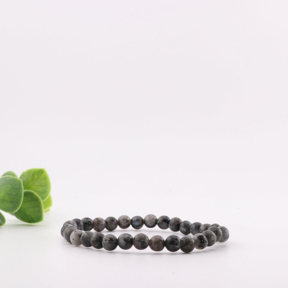 Natural Larvikite Bracelet, Metal Free, 6 mm - Unique Earth Tones