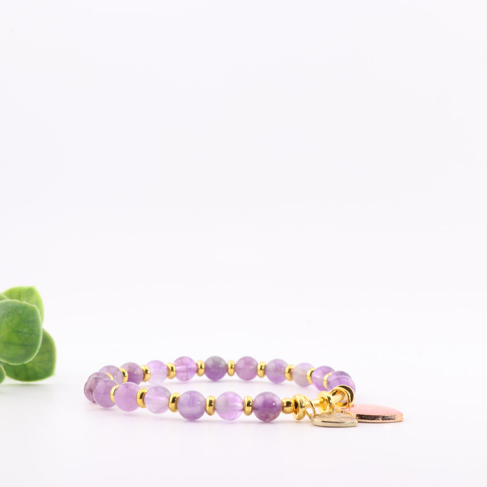 Natural Amethyst Heart Charm Bracelet - 6mm Beads, Versatile Fashion Accessory