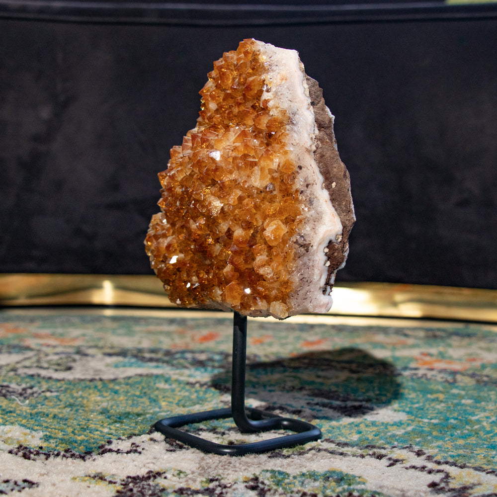 Natural Citrine Crystal on Metal Stand - Healing Gemstone Decoration, Meditation Therapy Gifts