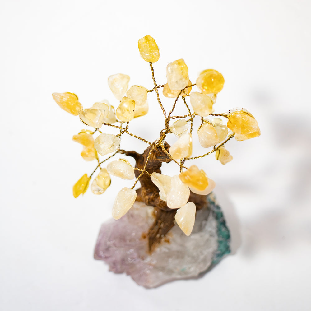 Citrine Gemstone Bonsai Tree with Amethyst Base – 5”