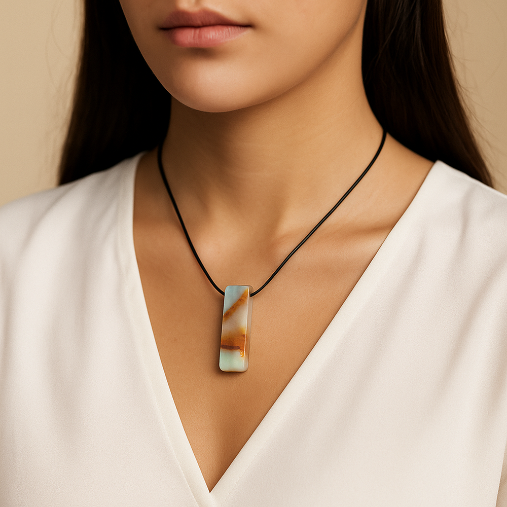 Handcrafted Natural Amazonite Metal Free Pendant Necklace for Sensitive Skin