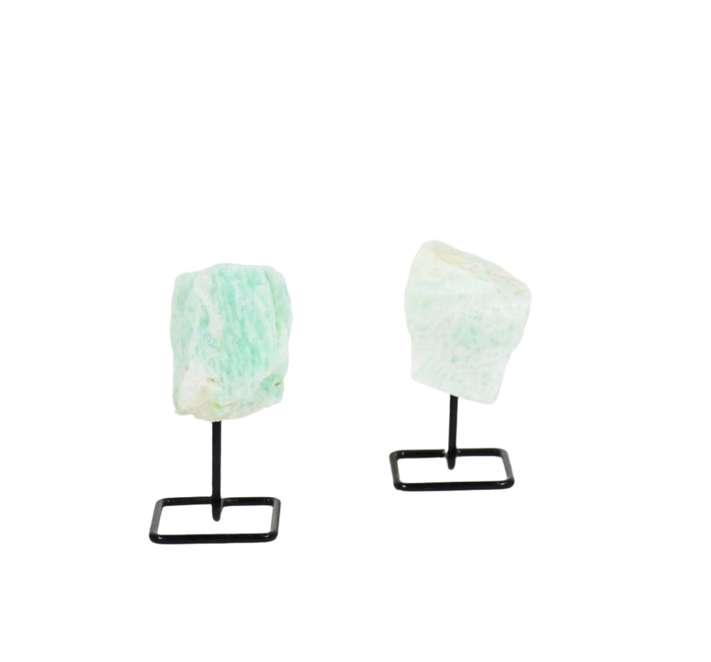 Natural Amazonite Crystal on Metal Stand - Healing Gemstone Decoration, Meditation Therapy Gifts
