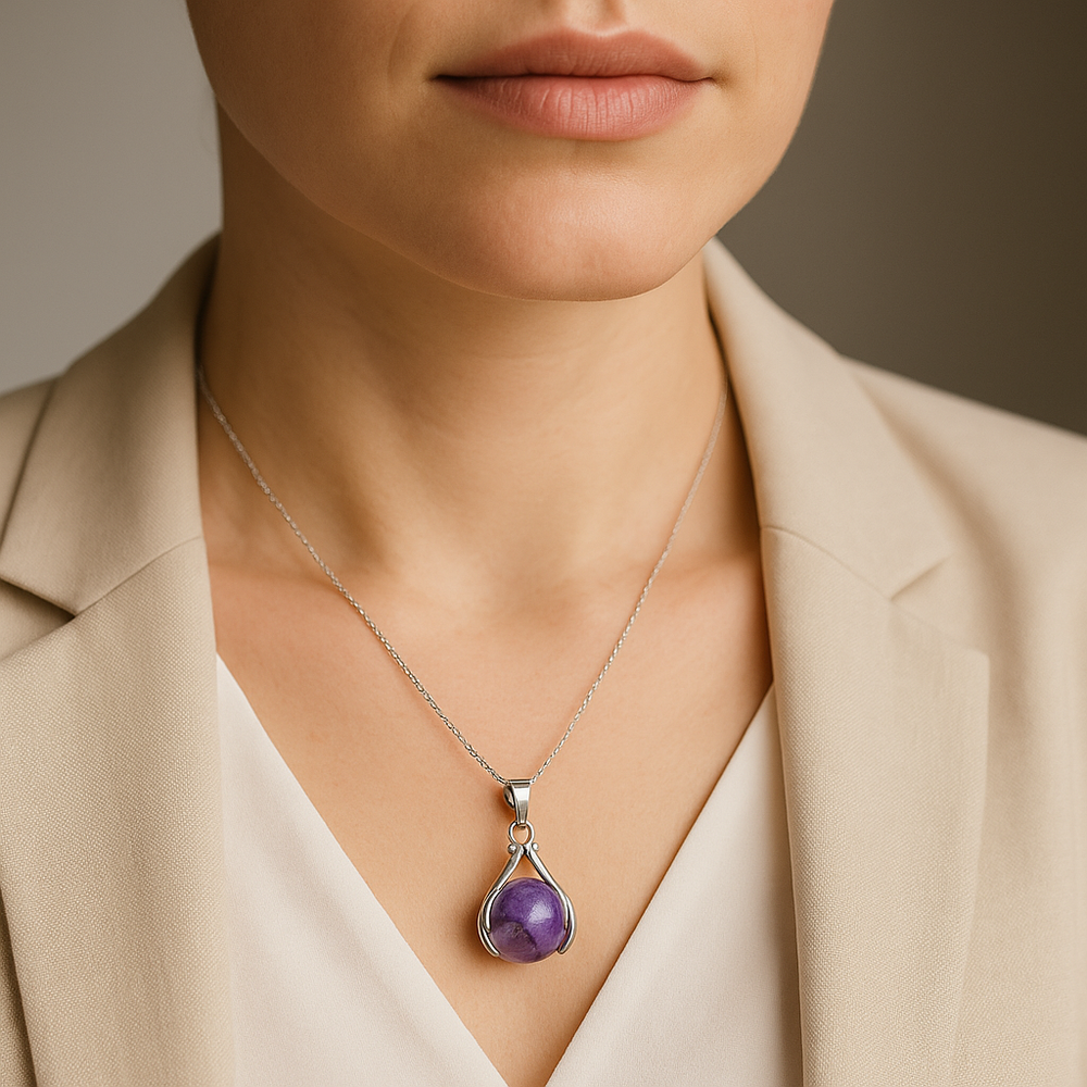 Handcrafted Amethyst Gemstone Sphere Pendant Necklace