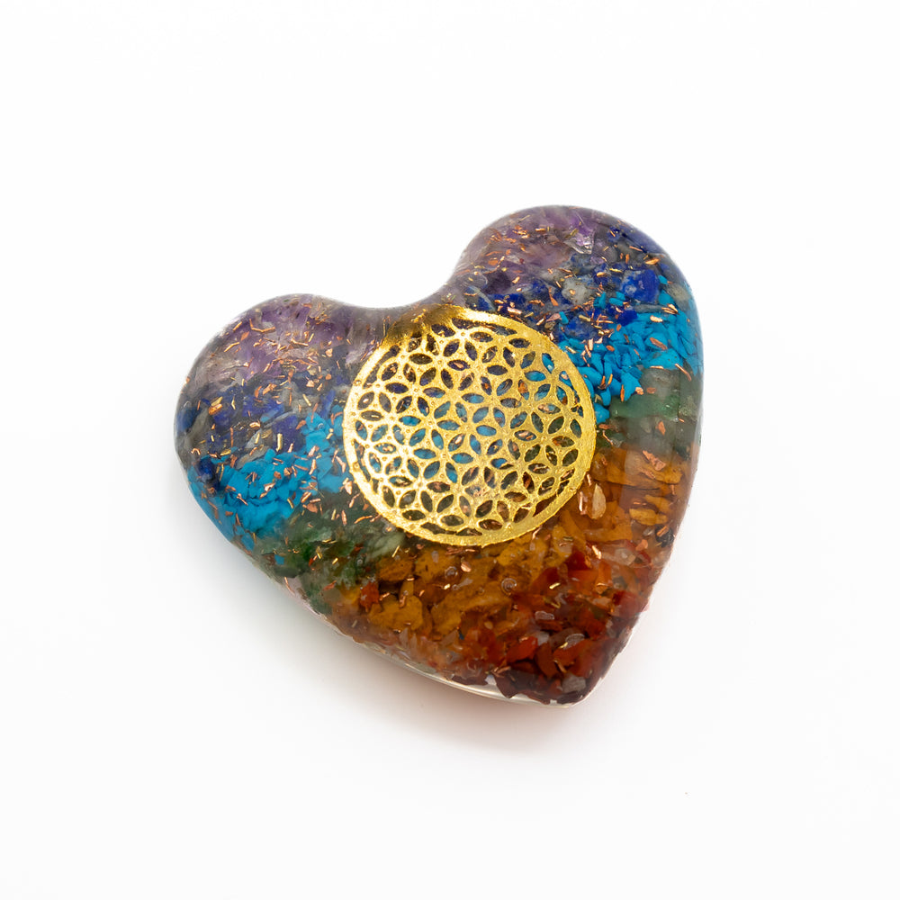 Chakra Orgonite Heart with Gold Symbol – Energy Alignment & Vibrational Harmony