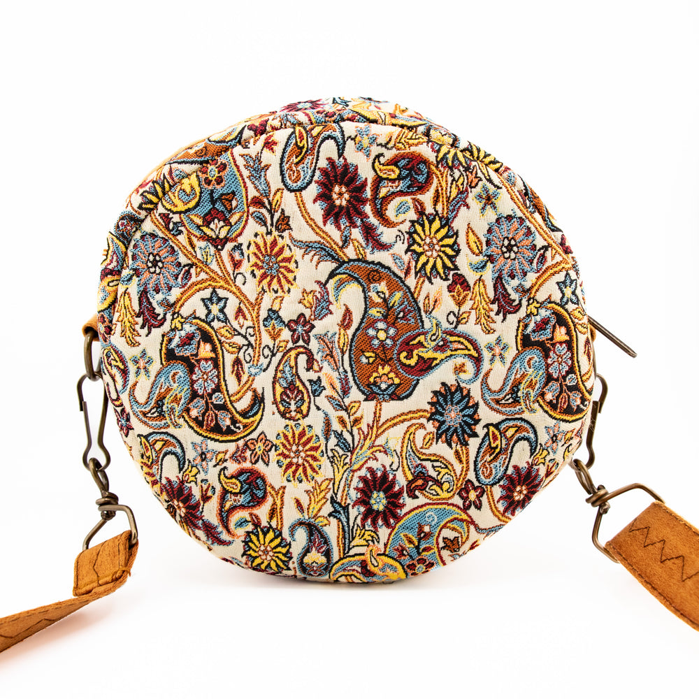 Authentic Turkish Round Paisley Handbags – Ivory Bloom, Crimson Vine, & Anatolian Jade