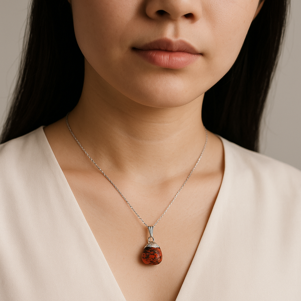 Red Jasper Gemstone Pendant Necklace - Handcrafted Crystal Jewelry