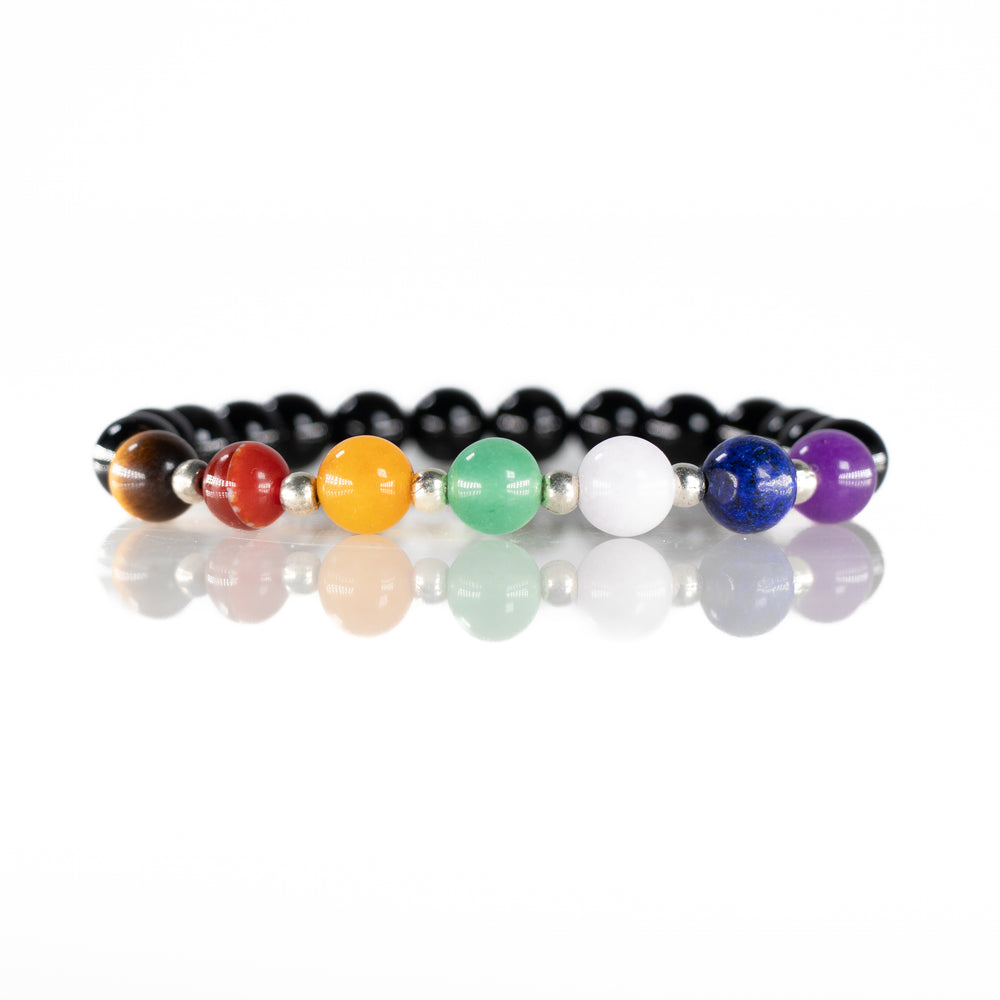 Natural Black Onyx and Chakra Bracelet- with Merkabah Charm, 8mm - Chakra Balancing Bracelet