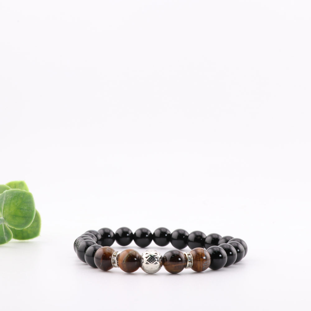 Natural Black Onyx & Tiger Eye Bracelet – Stylish Silver Accent, 8mm Beads | Energy and Balance