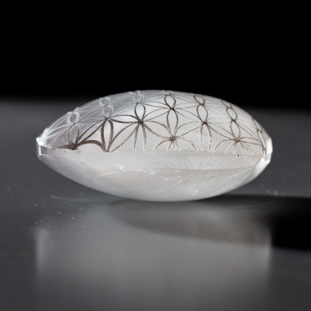 Natural Selenite Engraved Palm Stone Crystal - Polished Healing Crystal, Oval Therapy Gemstone