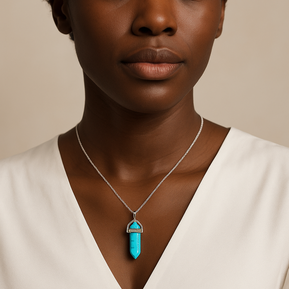 Synthetic Turquoise Point Pendant Necklace - Handcrafted Crystal Jewelry