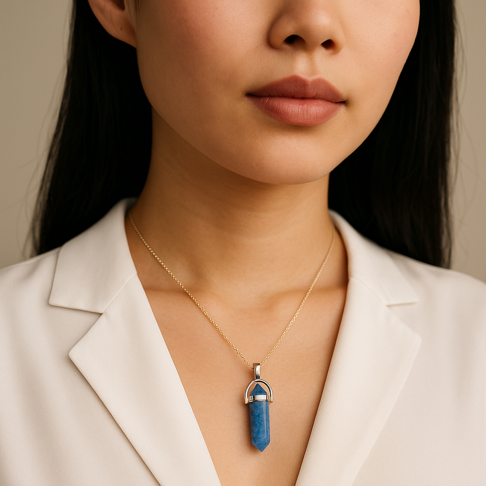 Blue Aventurine Point Pendant Necklace - Handcrafted Crystal Jewelry