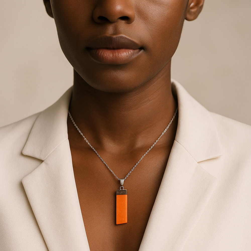 Red Aventurine Slab Stick Pendant Necklace - Handcrafted Crystal Jewelry