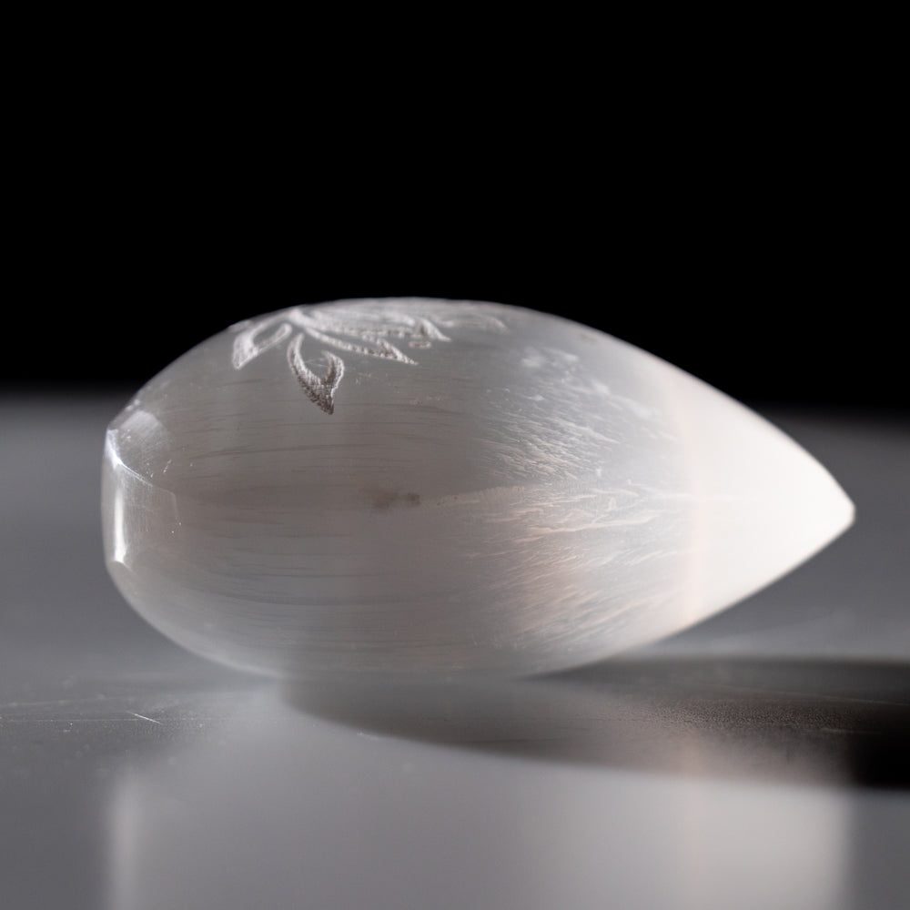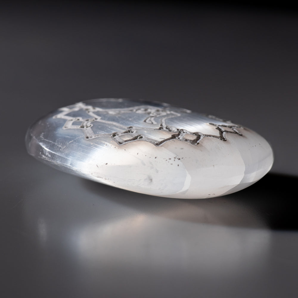 Natural Selenite Engraved Palm Stone Crystal - Polished Healing Crystal, Oval Therapy Gemstone
