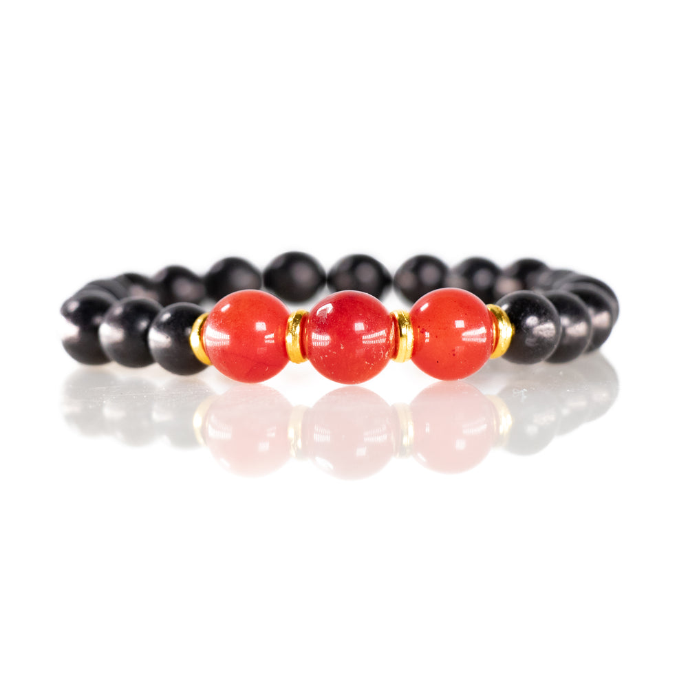 Natural Black Wood with Carnelian Gemstone Bracelet, 8mm