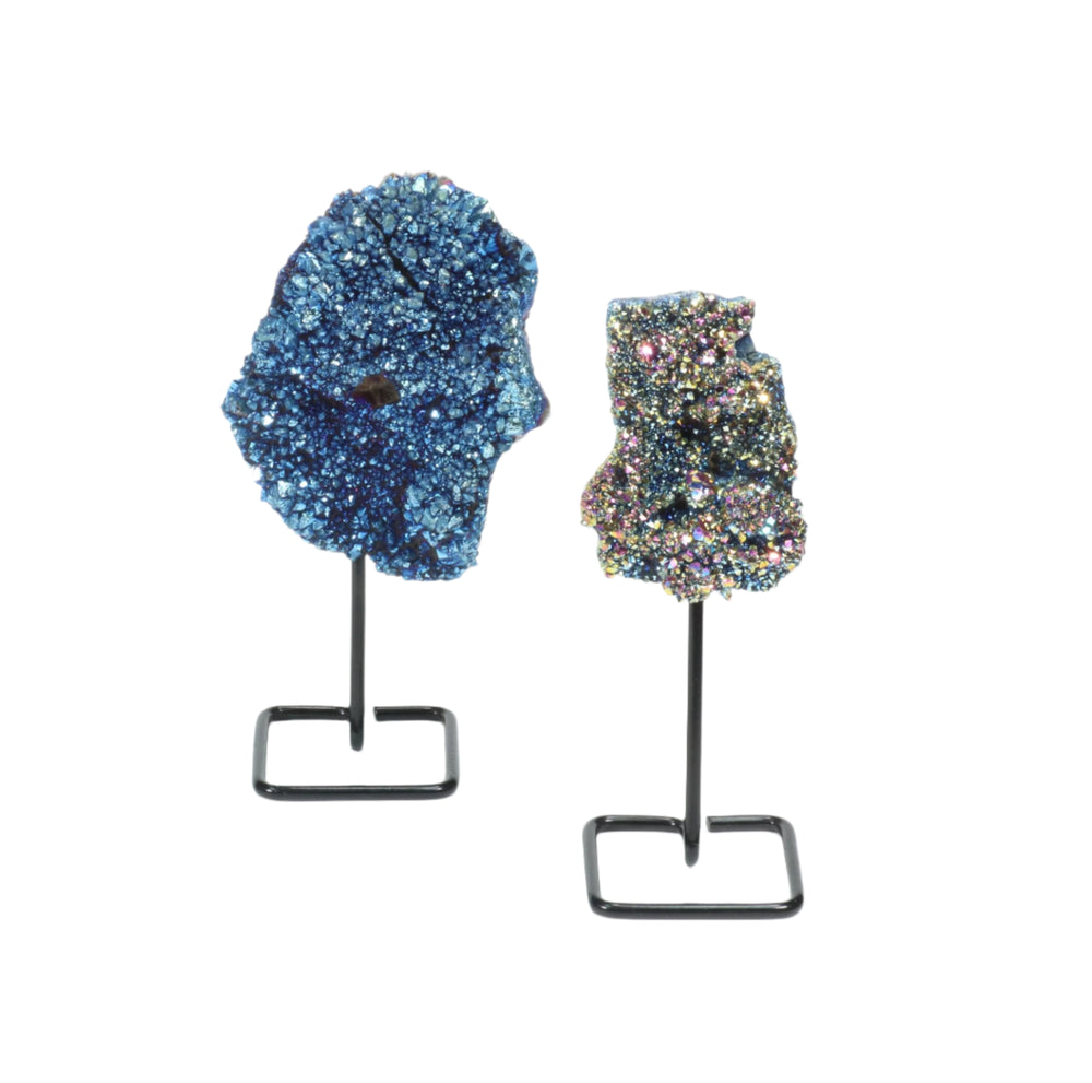 Titanium Quartz Crystal on Metal Stand - Healing Gemstone Decoration, Meditation Therapy Gifts