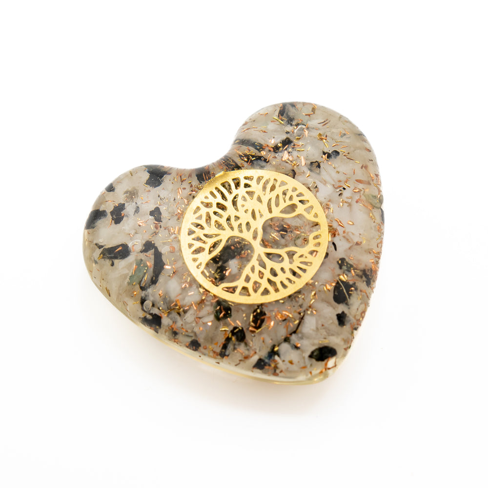 Clear Quartz & Black Tourmaline Orgonite Heart – Protection, Clarity & Grounding Energy