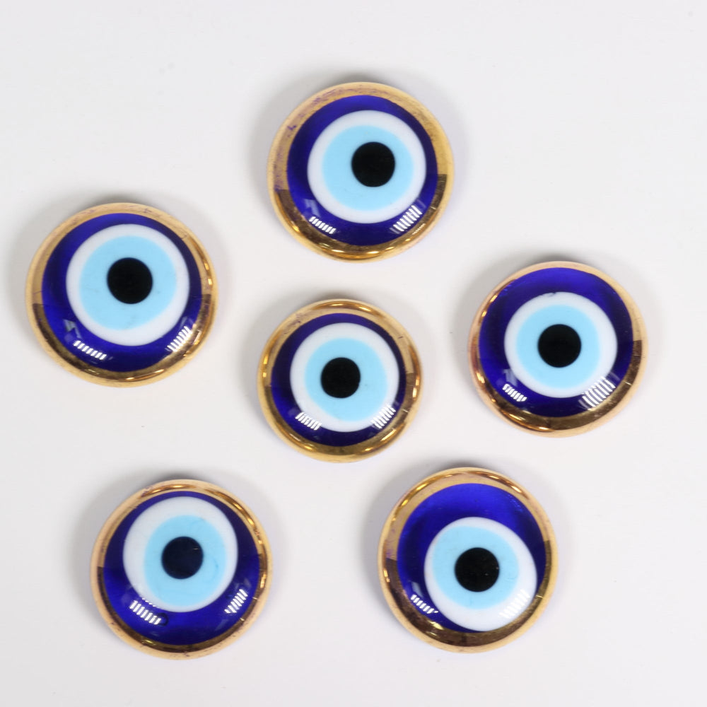 Handmade Gold Plated Flat Lampwork Nazar/Evil Eye, 1" Inch