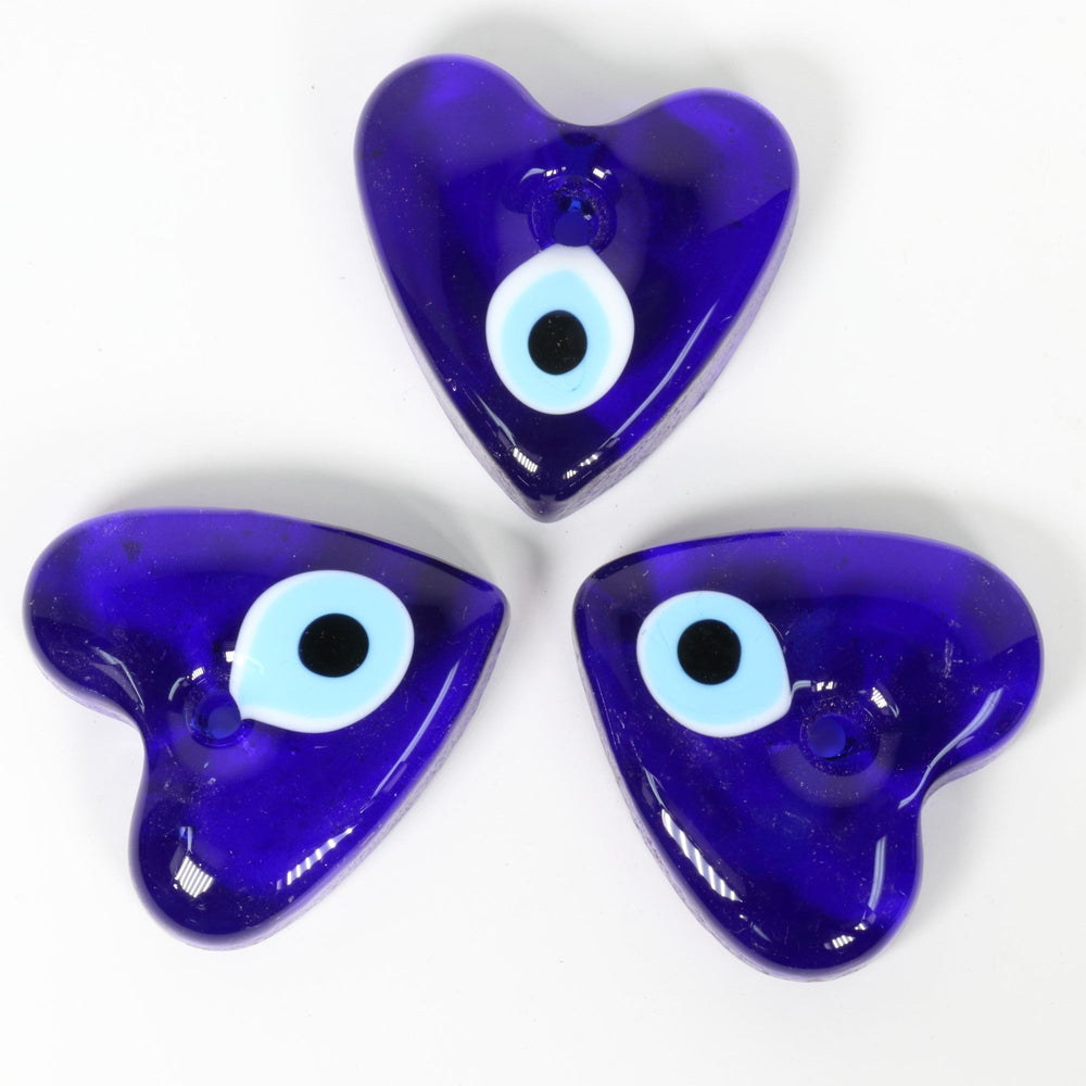 Handmade Heart Shaped Lampwork Nazar/Evil Eye, with Hole, 2.5" Inch