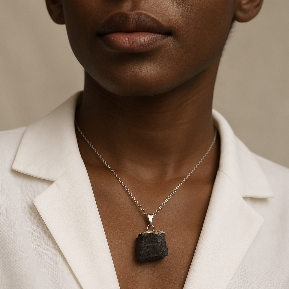 Black Tourmaline Gemstone Pendant Necklace - Handcrafted Crystal Jewelry