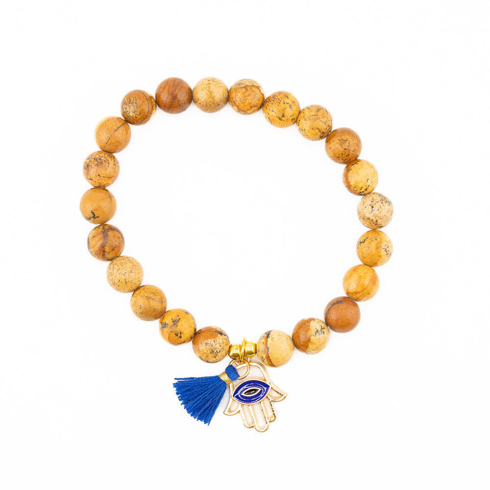 Picture Jasper & Black Bead Protection Bracelet Set – Hamsa Evil Eye Charm for Strength & Grounding