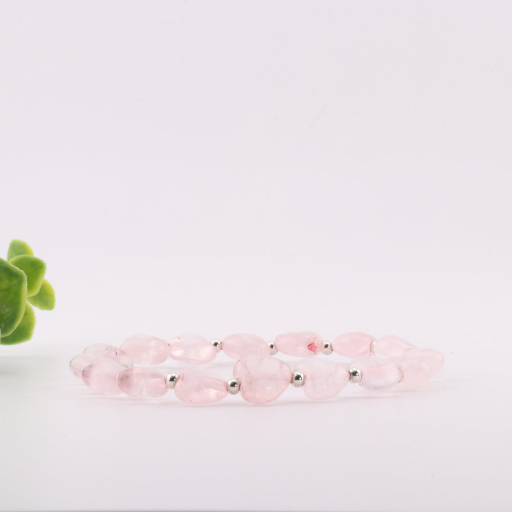 Natural Rose Quartz Gemstone Bracelet - Heart Shaped, 8mm - Healing Crystal, Self-Love