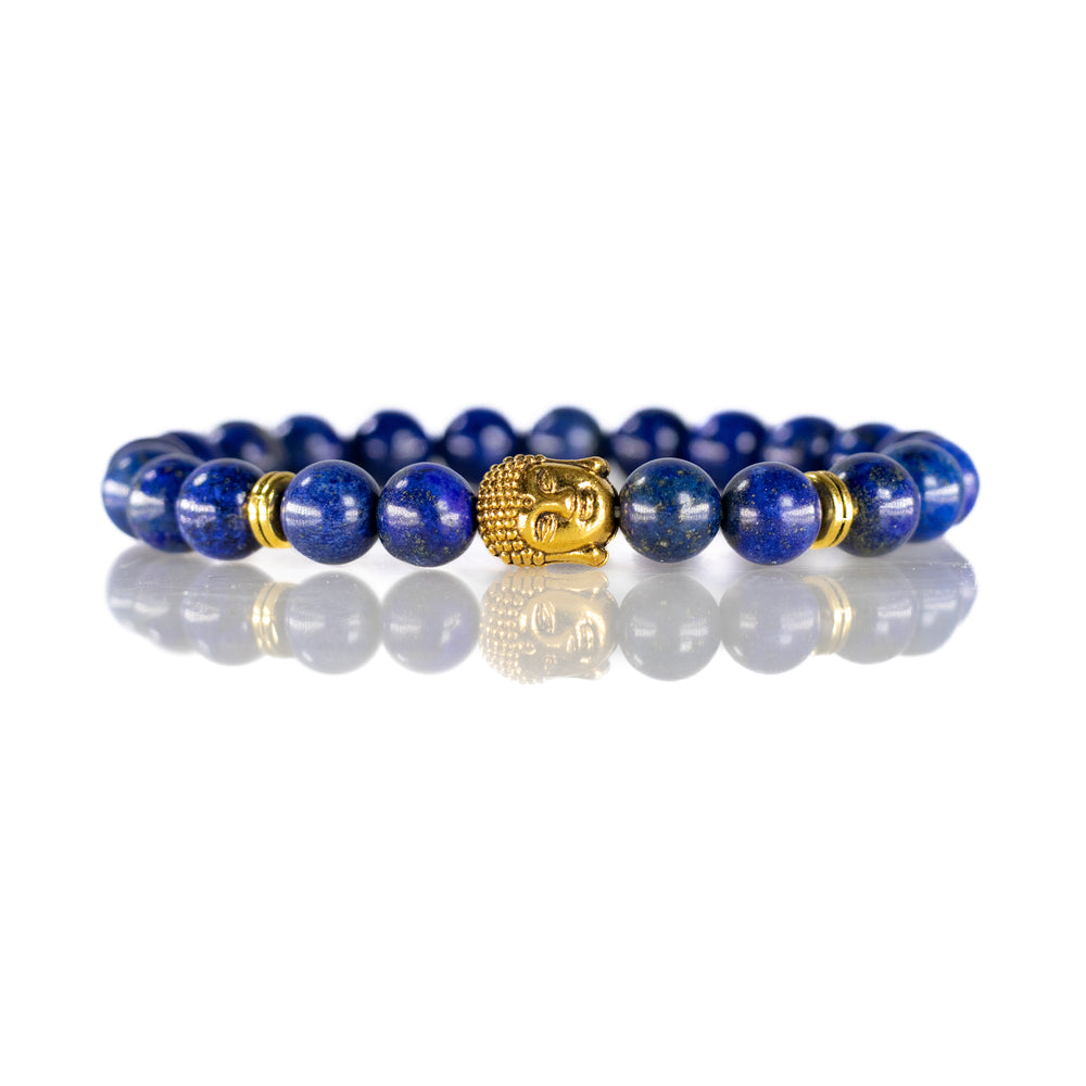 Natural Lapis Lazuli Gemstone Bracelet, 8mm - with Buddha Head Charm