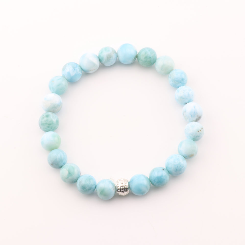 Special Christmas Gift - Natural Larimar Stone Bracelet - Metal Free, 8mm