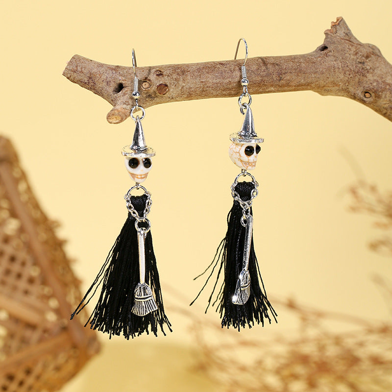 Skull Witch Halloween Tassel Earrings – Cute Statement Jewelry