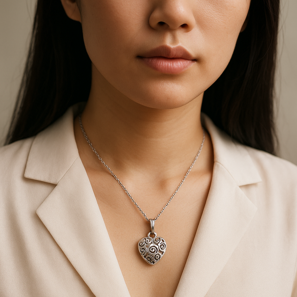 Heart Chic Silver-Colored Brass Pendant – Handcrafted Artisan Jewelry