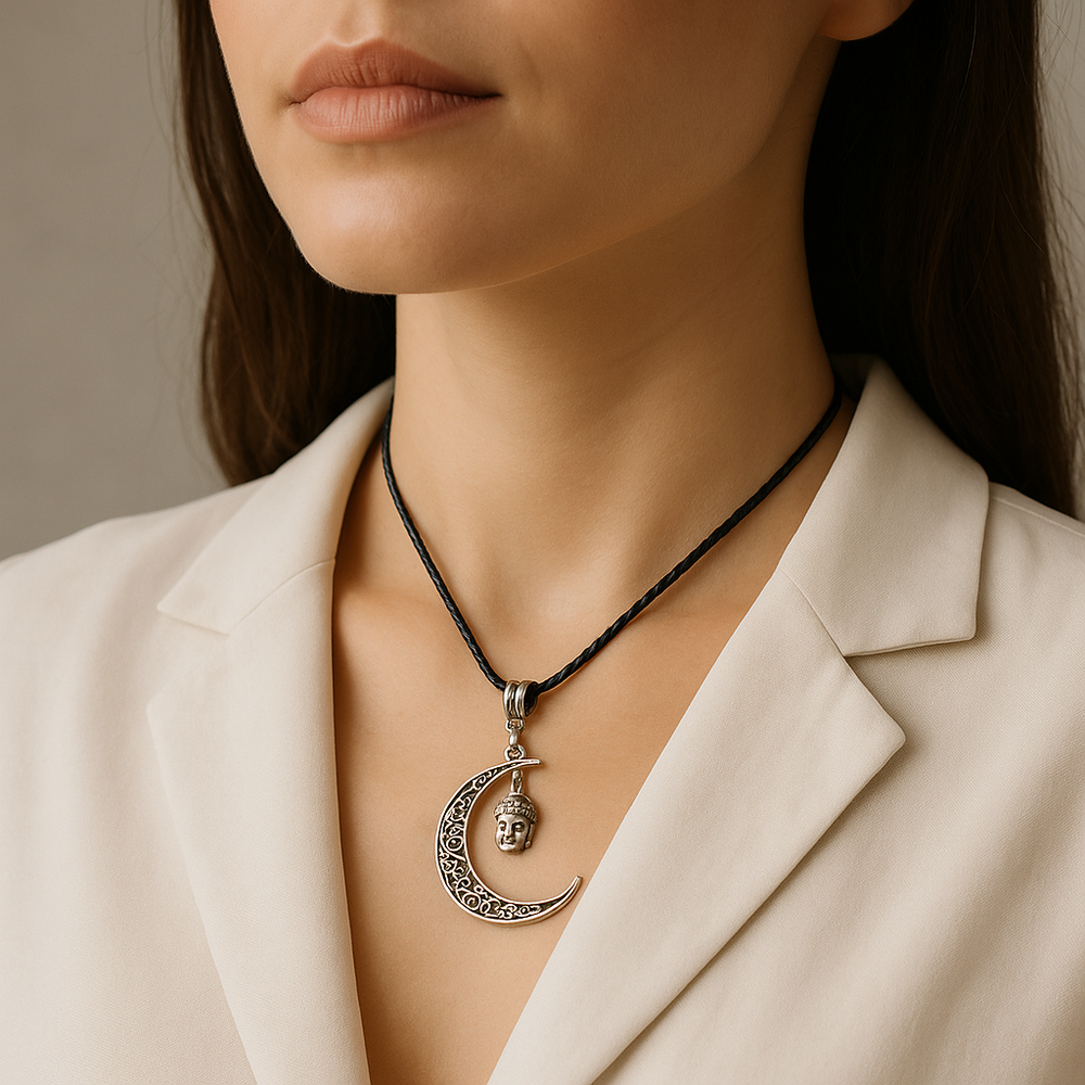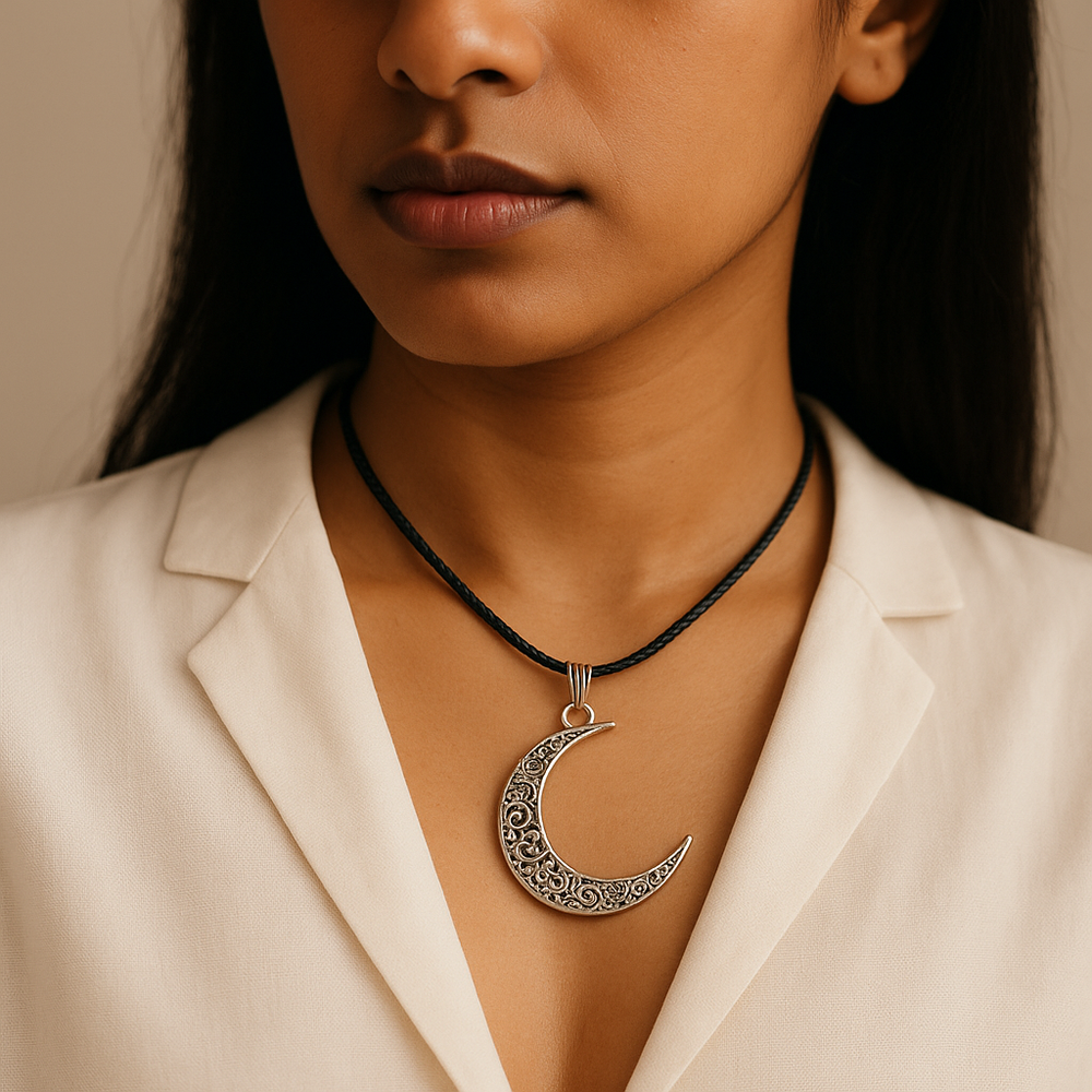 Moon Shaped Silver-Colored Brass Pendant Necklace - Handcrafted Artisan Jewelry