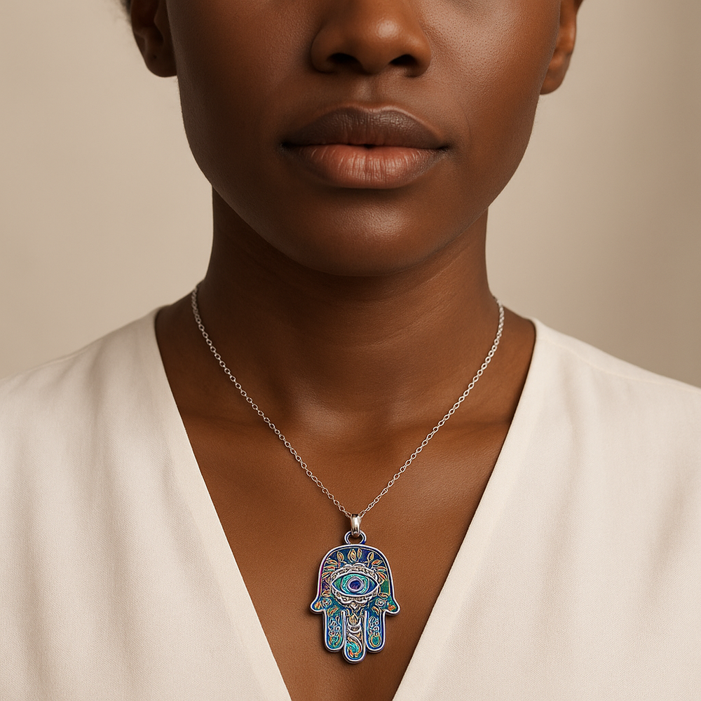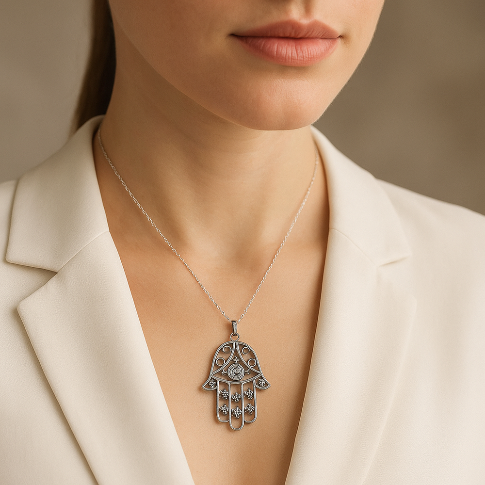 Silver-Colored Hamsa Hand Brass Pendant – Protection & Serenity, Hand of Fatima