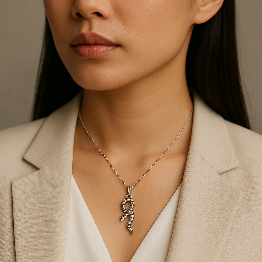 Mystic Serpent Charm: Handcrafted Silver-Colored Brass Snake Pendant