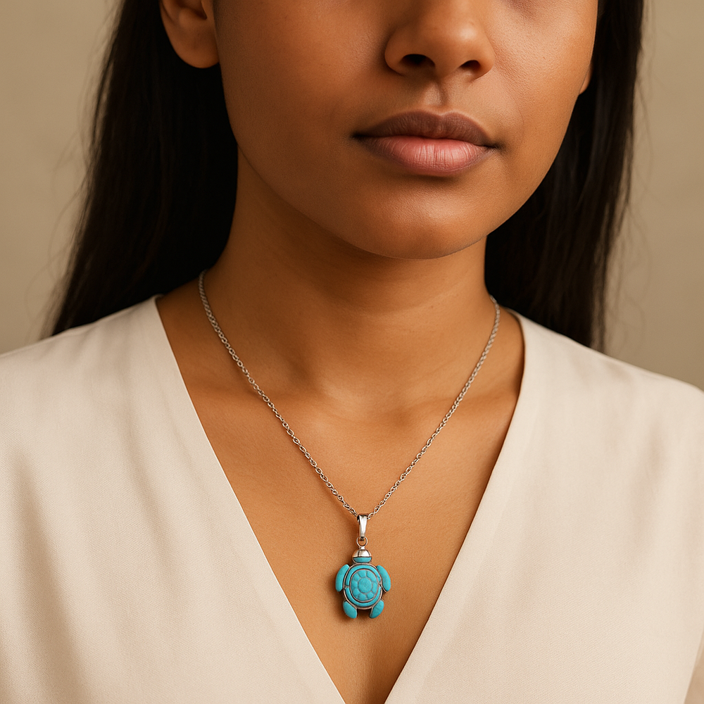 Turquoise Howlite Turtle Pendant Necklace - Serene Beauty & Handcrafted Charm