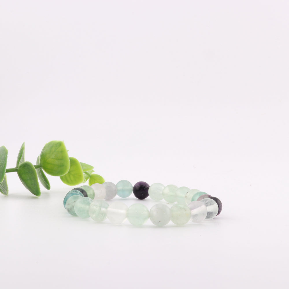 Natural Fluorite Gemstone Bracelet - 8mm, Metal-Free Jewel Accessory