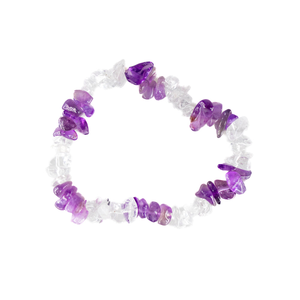 Natural Amethyst & Clear Quartz Chip Stone Bracelet – Metal-Free, 5-8mm
