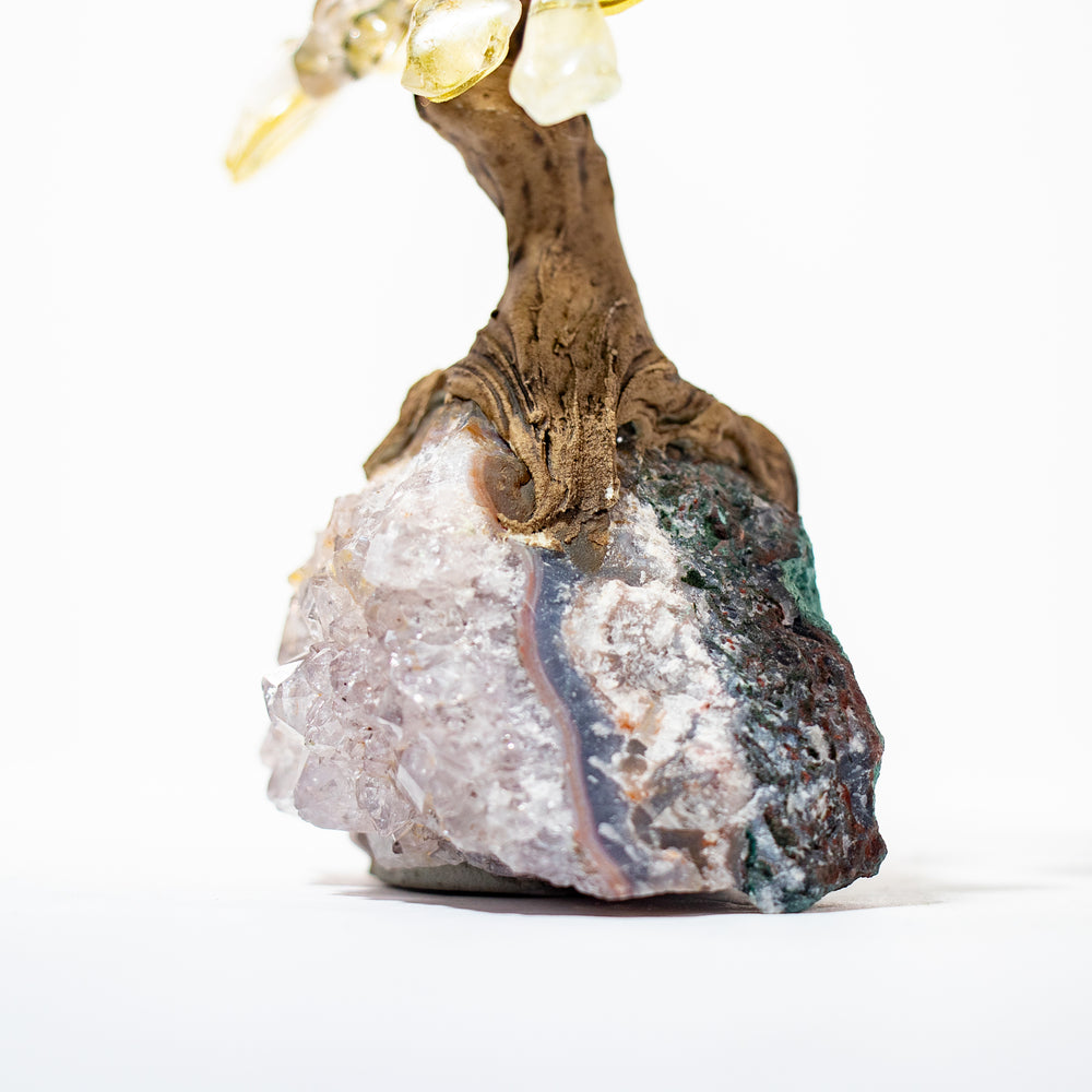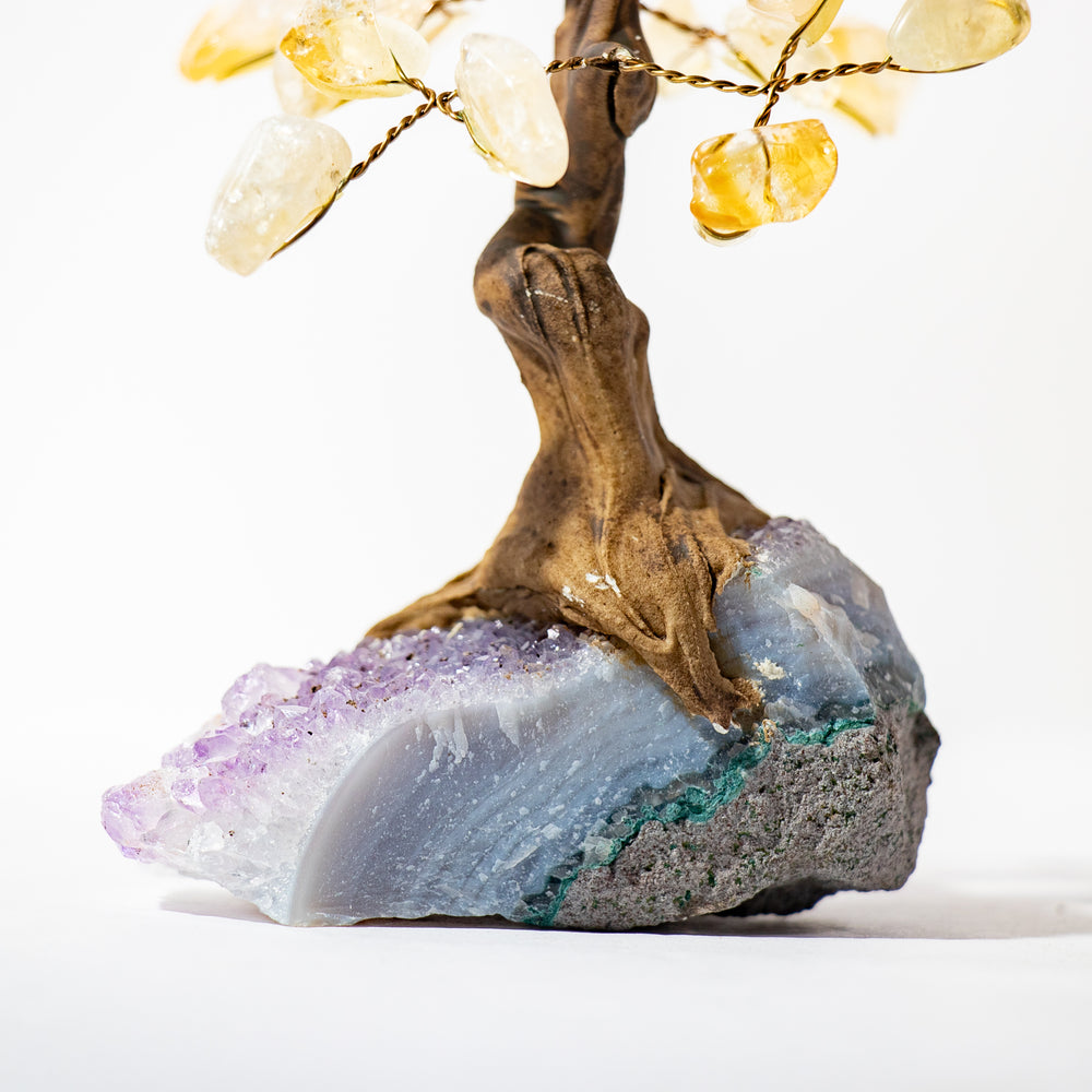 Citrine Mini Gemstone Tree with Amethyst Base – 4”–5