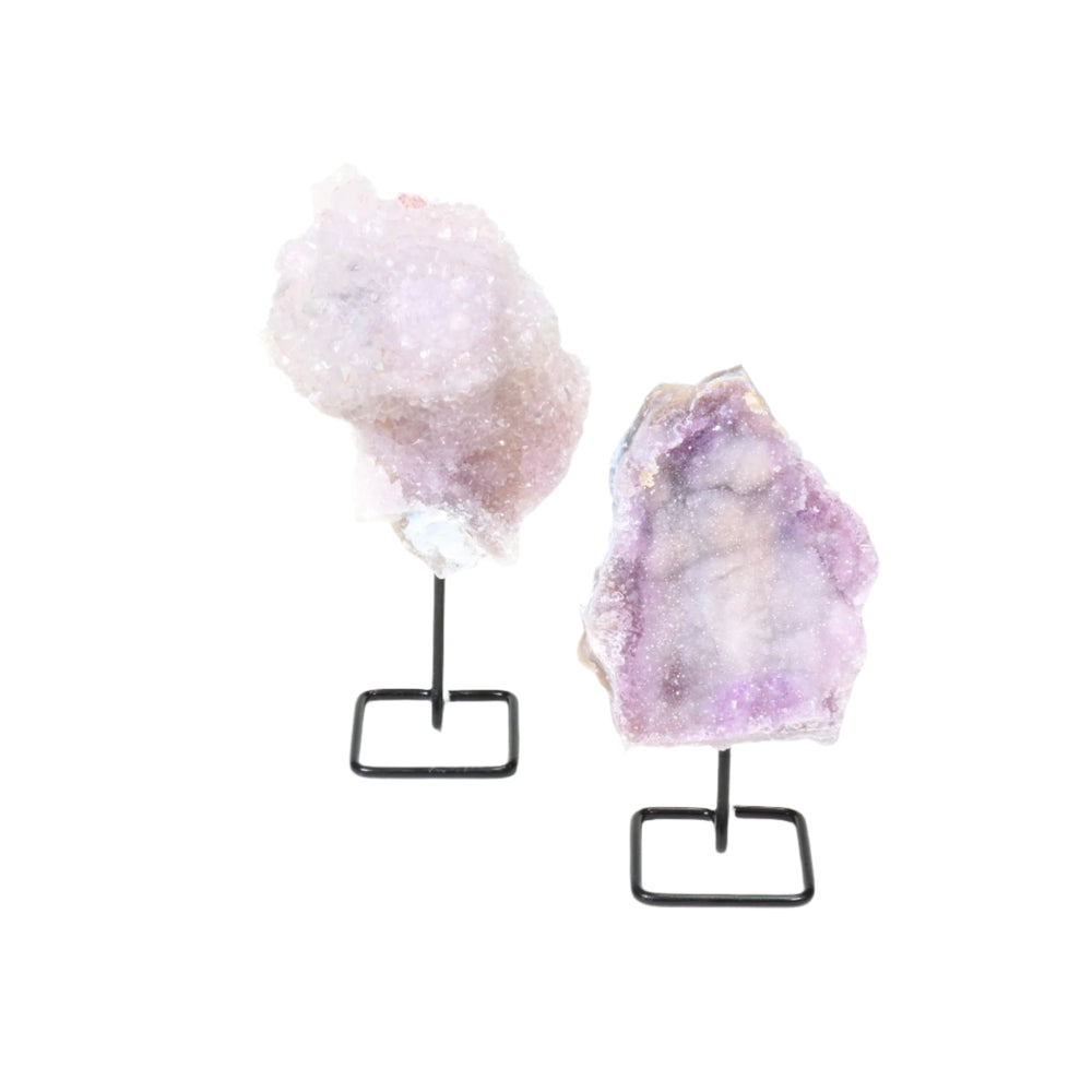 Natural Rainbow Flower Amethyst Crystal on Metal Stand - Healing Gemstone Decoration, Meditation Therapy Gifts
