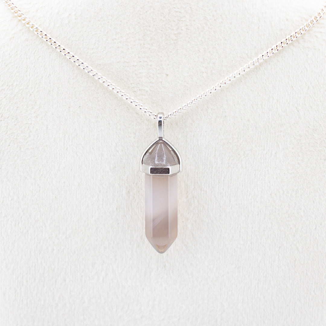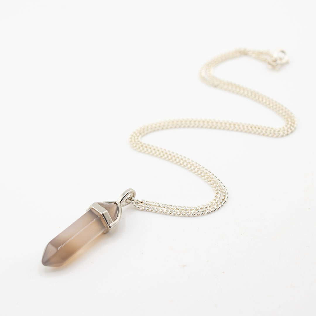 Collar con colgante de punta de ágata gris natural hecho a mano