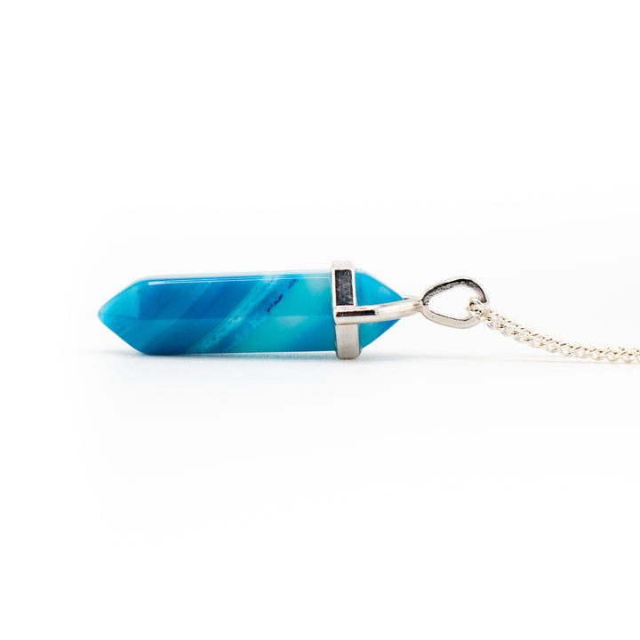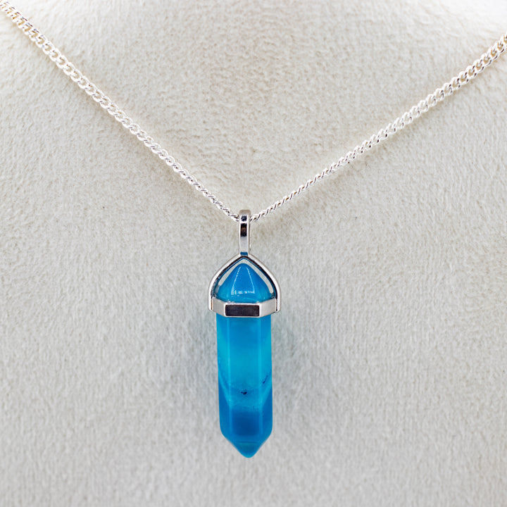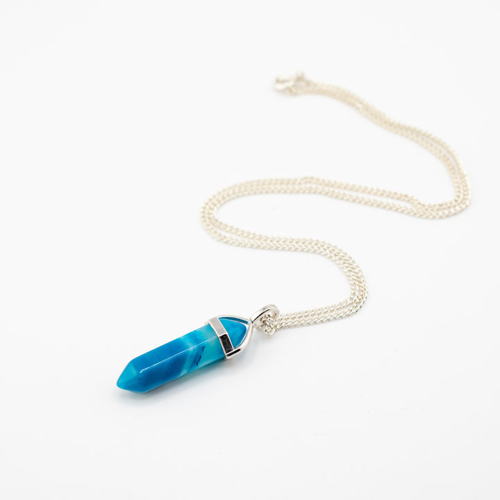 Collar con colgante de punta de ágata azul teñida, hecho a mano