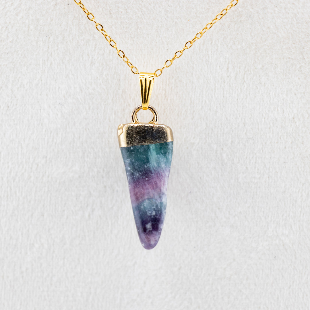 Armonía Radiante: Elegante Colgante de Fluorita Natural – Collar Chapado en Oro para Serenidad y Estilo | Fluorita Arcoíris, Espato Flúor