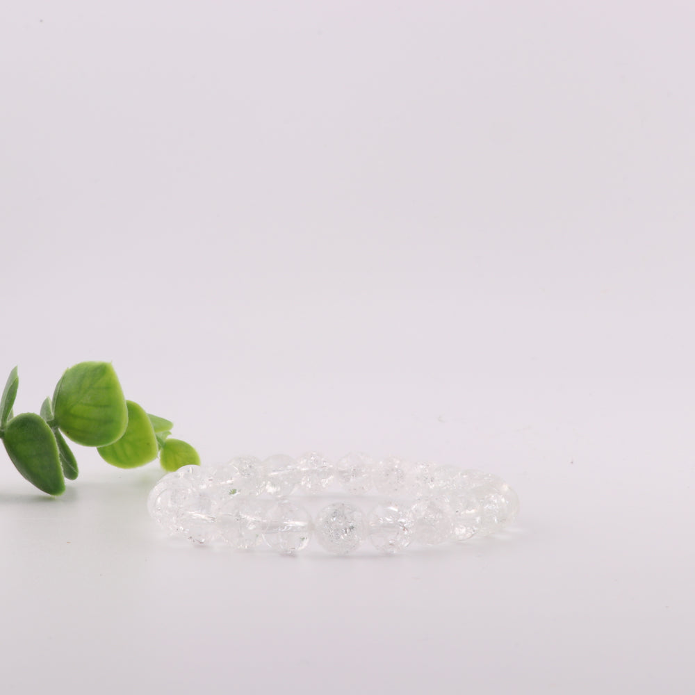 Pulsera de cuarzo craquelado natural (sin metal, 8 mm) - Joyería de sanación y meditación