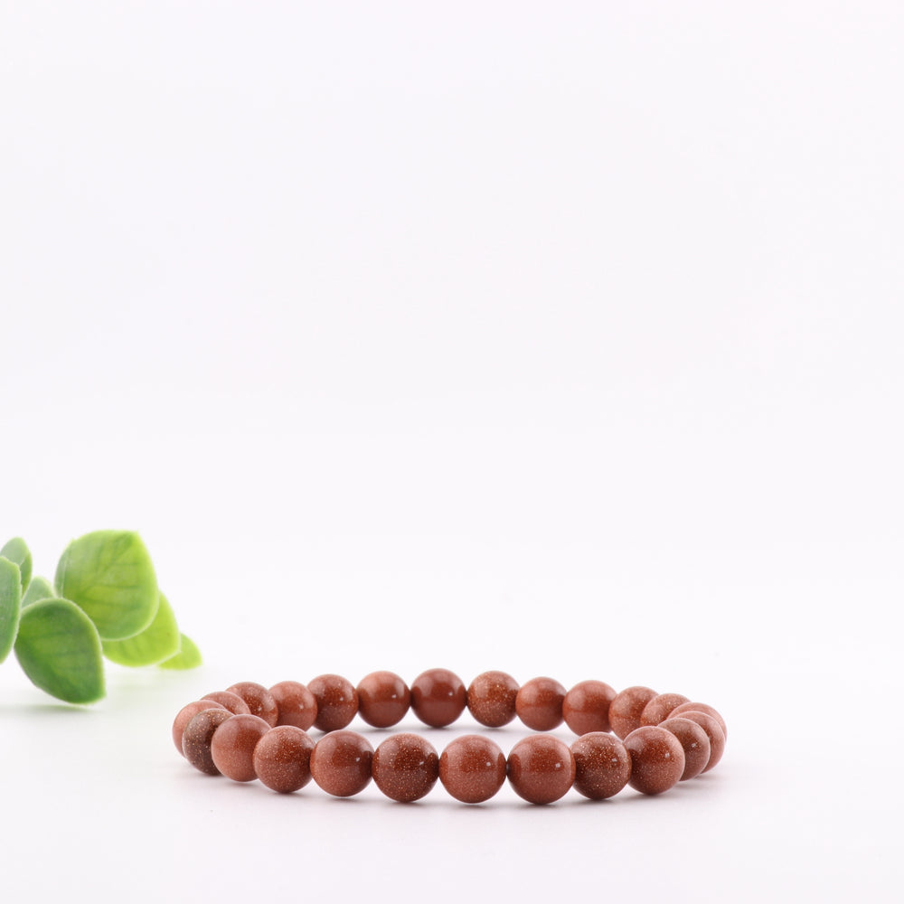 Pulsera de piedra dorada roja - Sin metal, cuentas de 8 mm