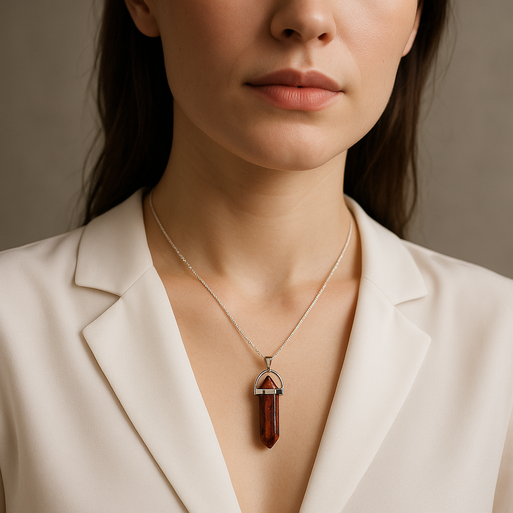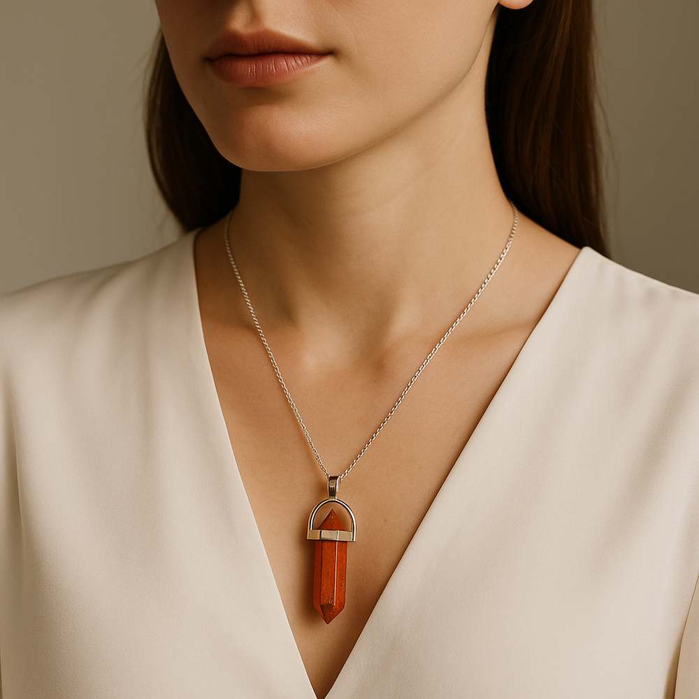 Collar con colgante de punta de jaspe rojo natural hecho a mano